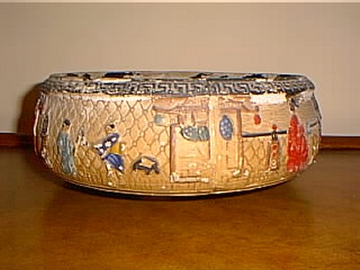 "My grandfather,Mr. Herbert J.Miller Duvenall,owned a shipyard in Montevideo.In those years, in the late twenties lots of Norwegian whalers stopped in Uraguay, and the manager of the company, a Mr.Gordon Firing once gave him the pot, filled with candies, as a Christmas present.Since then it has remained in the family."